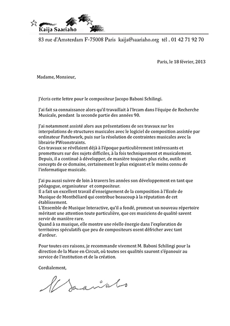 Jean-Baptiste Barrière - composer - IRCAM - Paris [original letter in French]
