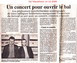 Playing like a conductor in the « cour » of P lais. Thanks to whom ? Jacopo Baboni Schilingi, over 40 years old from Milan, with an impressive CV, very well known in Montbéliard, where he teaches composition. He is an inventor of new ways of conceiving music, Baboni Schilingi who created the Ensemble de Musique Interactive. [Joël Mamet]